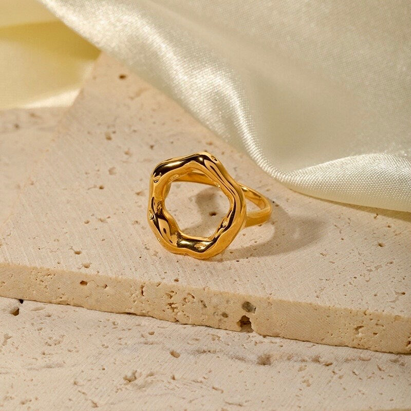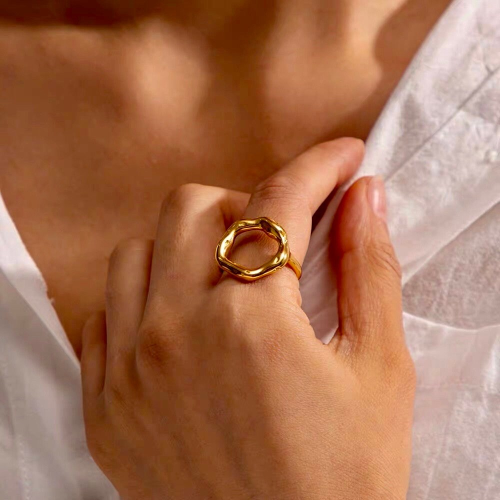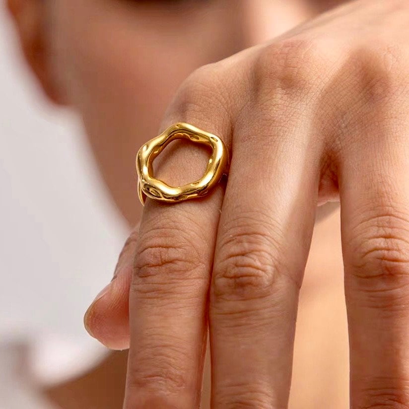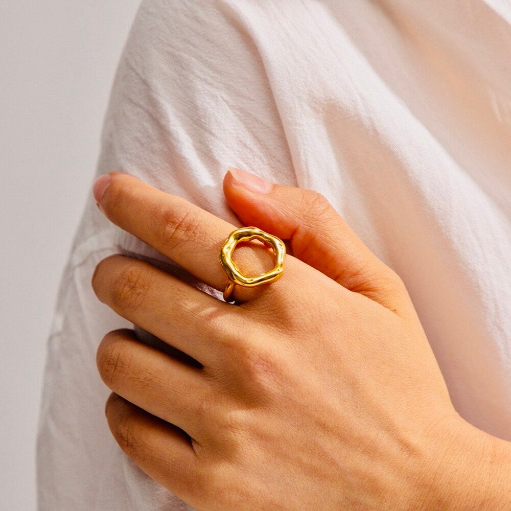 Unser Full Circle Goldring ist ein moderner, klobiger Goldring, der von der Schönheit der Natur inspiriert ist. Dieser aus hochwertigem Gold gefertigte Goldring mit Kreisform weist ein einzigartiges geometrisches Muster auf, das für ein starkes Statement sorgt. Er ist vielseitig, bequem und perfekt für alle, die große Ringe lieben. Schenken Sie ihn einem geliebten Menschen oder tragen Sie ihn selbst als Erinnerung an die Einfachheit und Schönheit des Lebens. Um seinen Glanz zu erhalten, reinigen Sie ihn vorsichtig und vermeiden Sie aggressive Chemikalien.