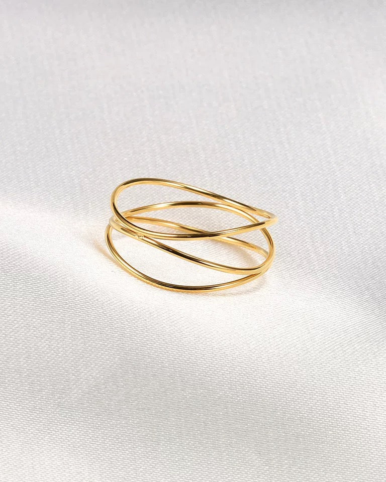 Werten Sie Ihren Stil mit unserem Gold Wrap Ring auf. Dieser exquisite Wickelring aus 925er Sterlingsilber mit Goldbeschichtung ist ein einzigartiger mehrschichtiger, überkreuzter, klobiger Ring und ein vielseitiges Stück, das sich perfekt für jedes Outfit oder jeden Anlass eignet.