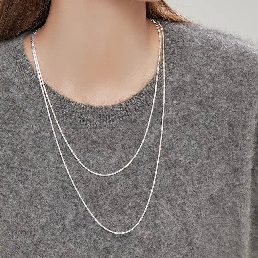 Die zarte Schlangenkettenhalskette ist Ihre beste minimalistische Kettenhalskette. Diese Schlangenkettenhalsketten aus Silber S925 sind zum wiederholten Tragen konzipiert. Das vielseitige Design mit extra Länge ermöglicht das Tragen in einer, zwei oder drei Lagen.
