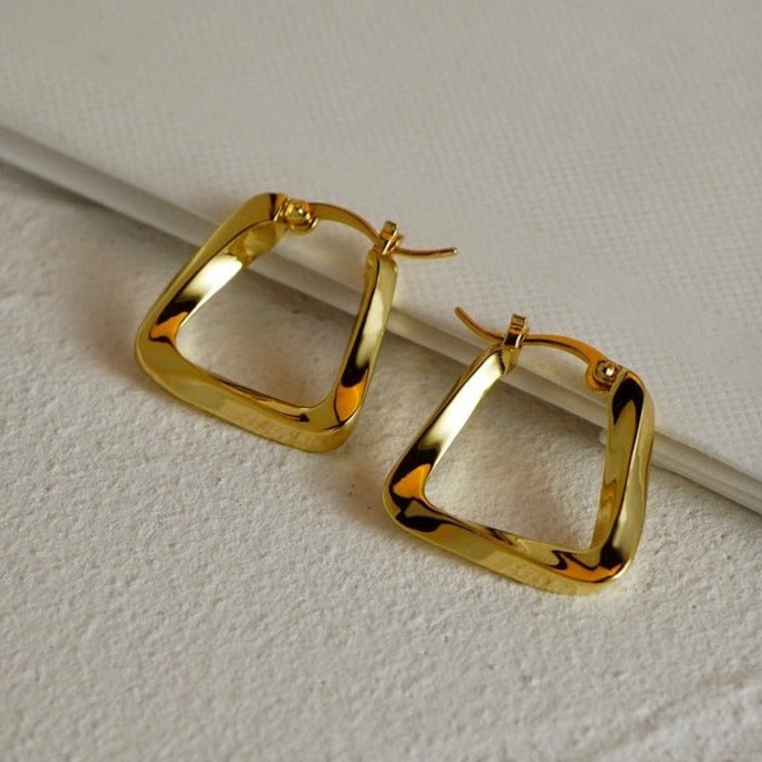 Moderner, gedrehter Dreiecks-Creolen in Metallic-Gold