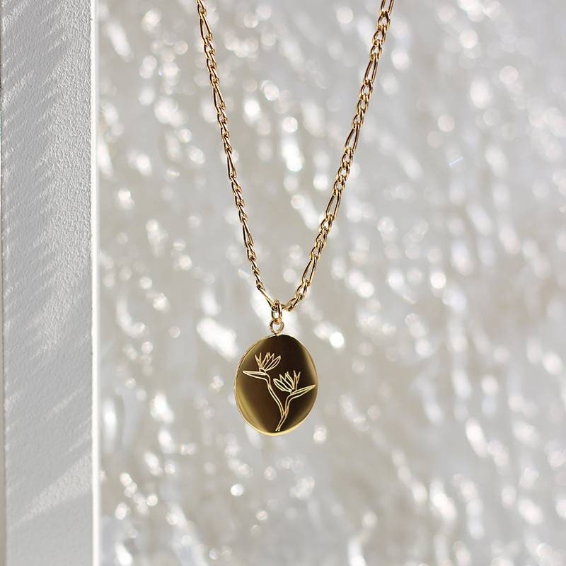 Voeg een vleugje elegantie toe aan je outfit met deze prachtige gouden kraanbloemketting met Figaro-ketting. Het ingewikkelde ontwerp van de kraanbloemhanger en de delicate Figaro-ketting creëren een uniek en opvallend sieraad. Deze ketting is perfect om als laagje te dragen of om op zichzelf te dragen, en is een attent cadeau voor een speciaal iemand. Deze ketting is met zorg handgemaakt van hoogwaardige materialen en zal zeker een geliefde toevoeging aan je sieradencollectie worden.
