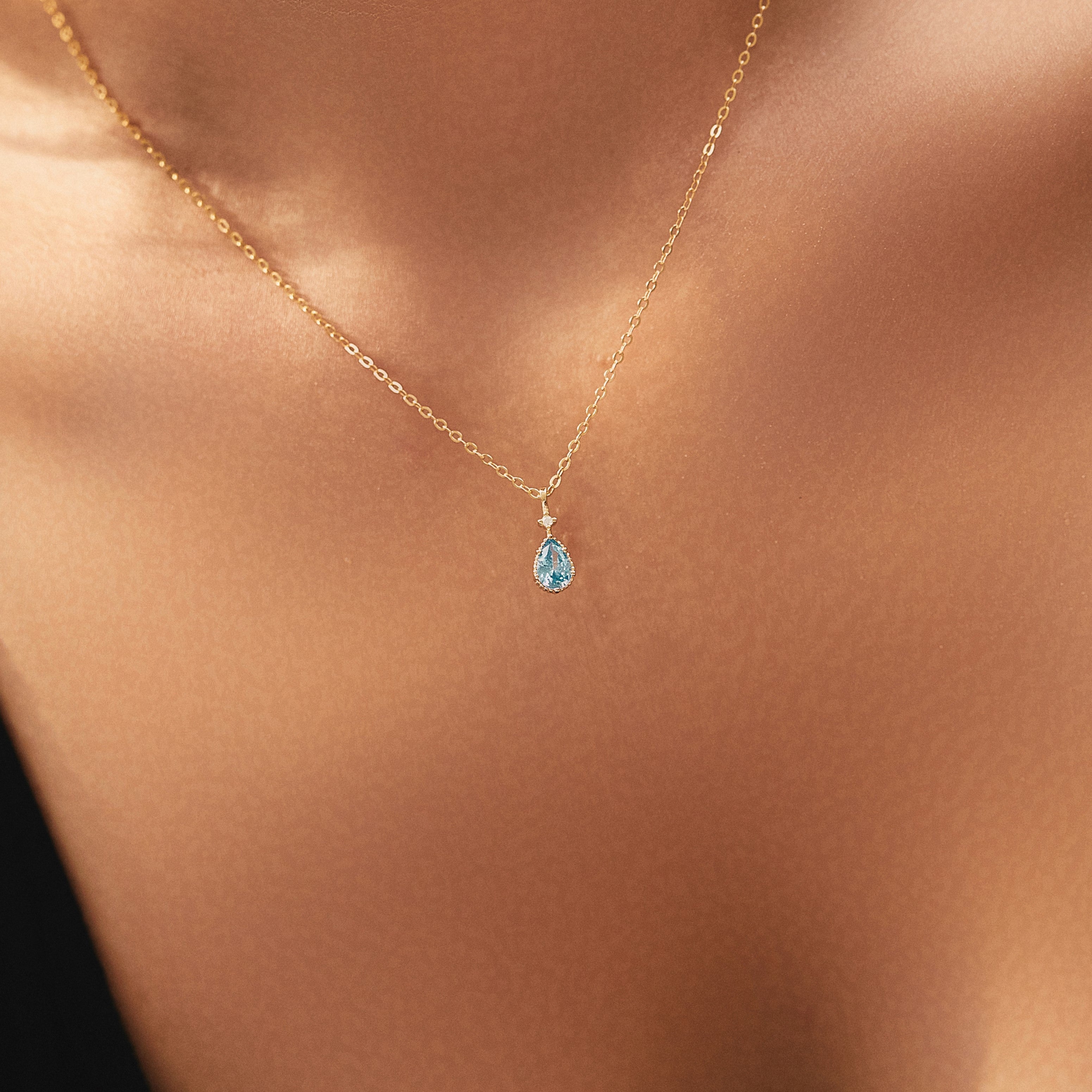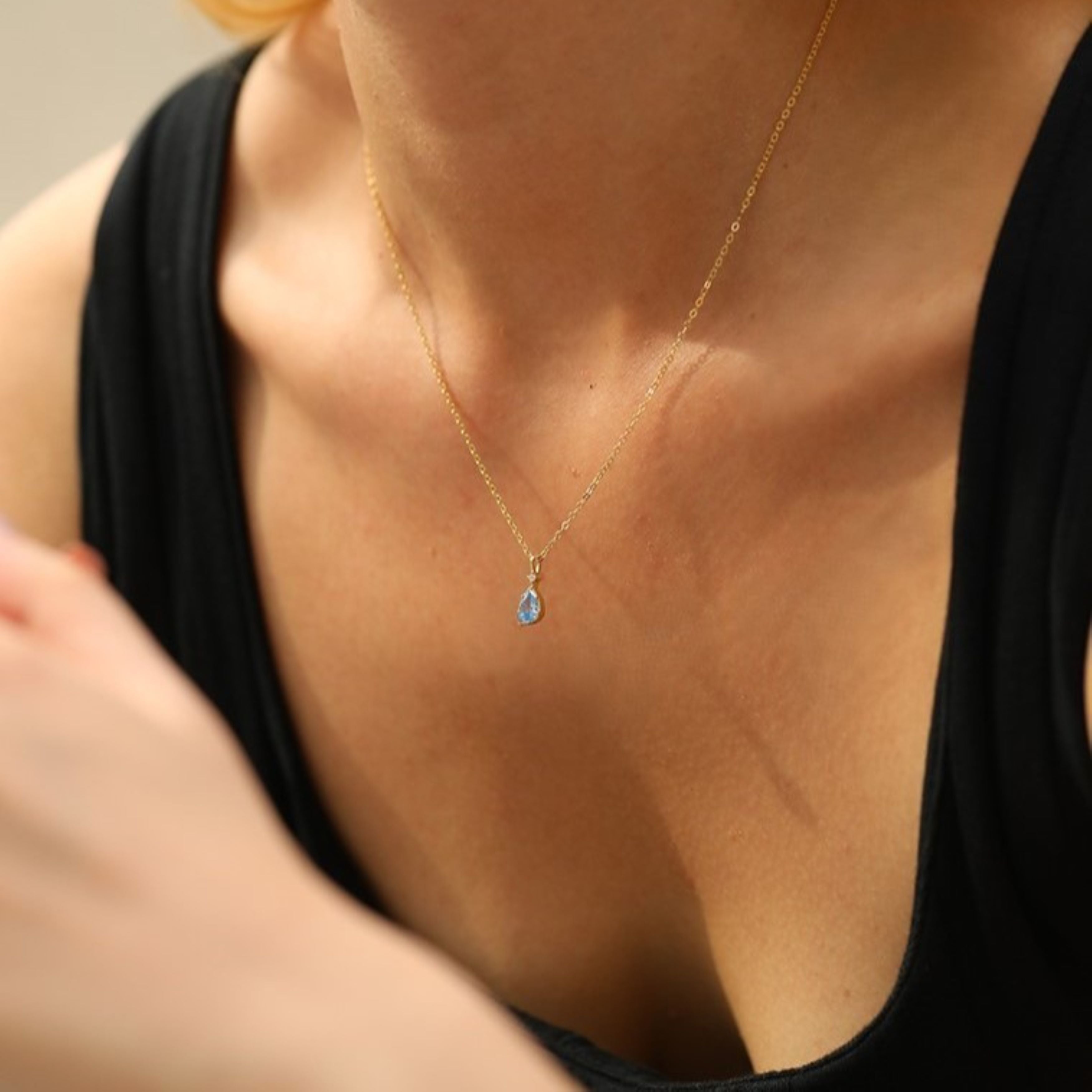 Ontdek de tijdloze schoonheid van onze Blue Topaz-ketting uit onze Sapphire Jewelry-collectie. Deze ketting heeft een betoverende lichtblauwe saffierhanger, bekend om zijn lichtblauwe tint en wijsheidbrengende eigenschappen, die elegant hangt aan een duurzame gouden ketting.