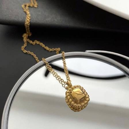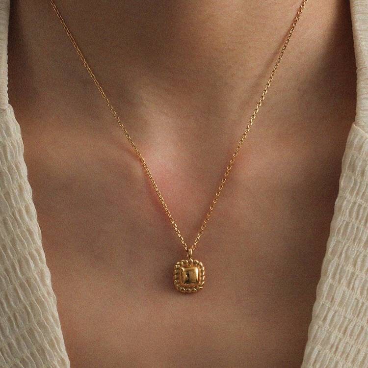 This Vintage inspired Enamel Pendant Gold Necklace is a unique design, inspired by stella pendant necklace. Featuring a Beaded Cushion charm pendant, cushion cut in Enamel shape, made of high quality 18K gold plating on Stainless steel , water proof,