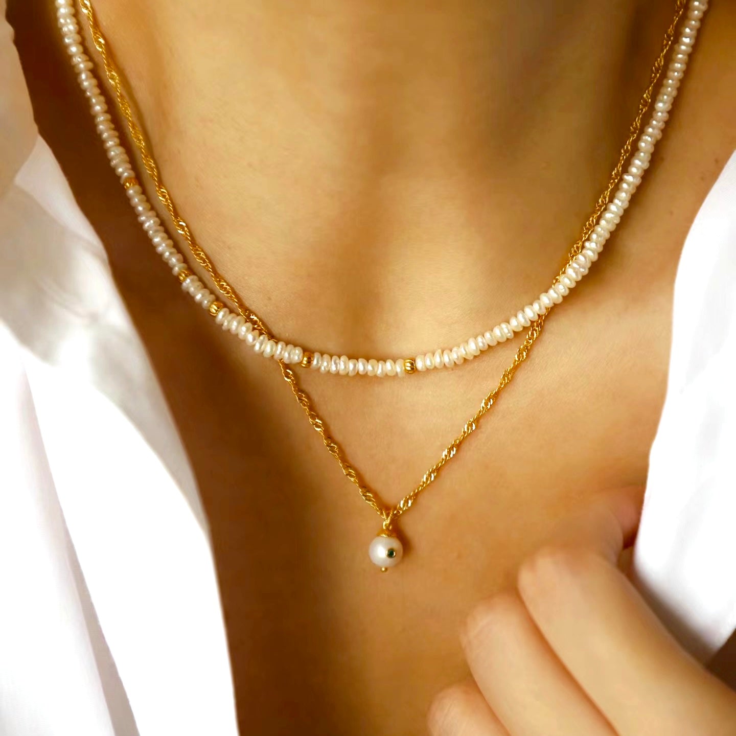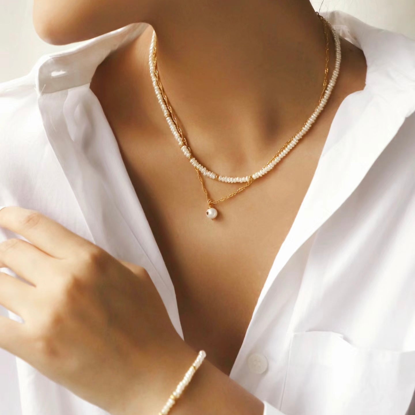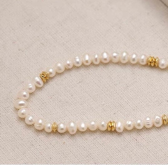 Discover a Elegant Beaded Necklace: Elevate your jewellery collection with this exquisite beaded necklace, a harmonious fusion of lustrous pearls and finely faceted metal beads. These pearls offer a unique twist on tradition. Whether you're seeking a stunning accessory for special occasions or simply aiming to infuse everyday elegance into your style, this necklace is the perfect choice.