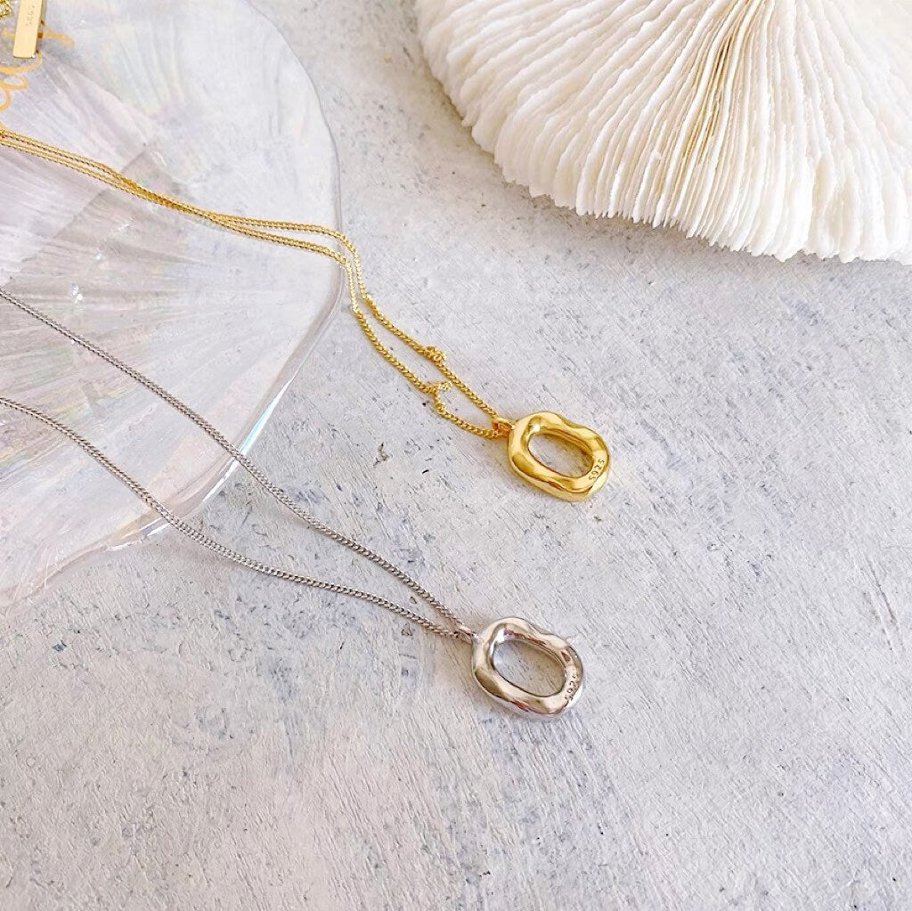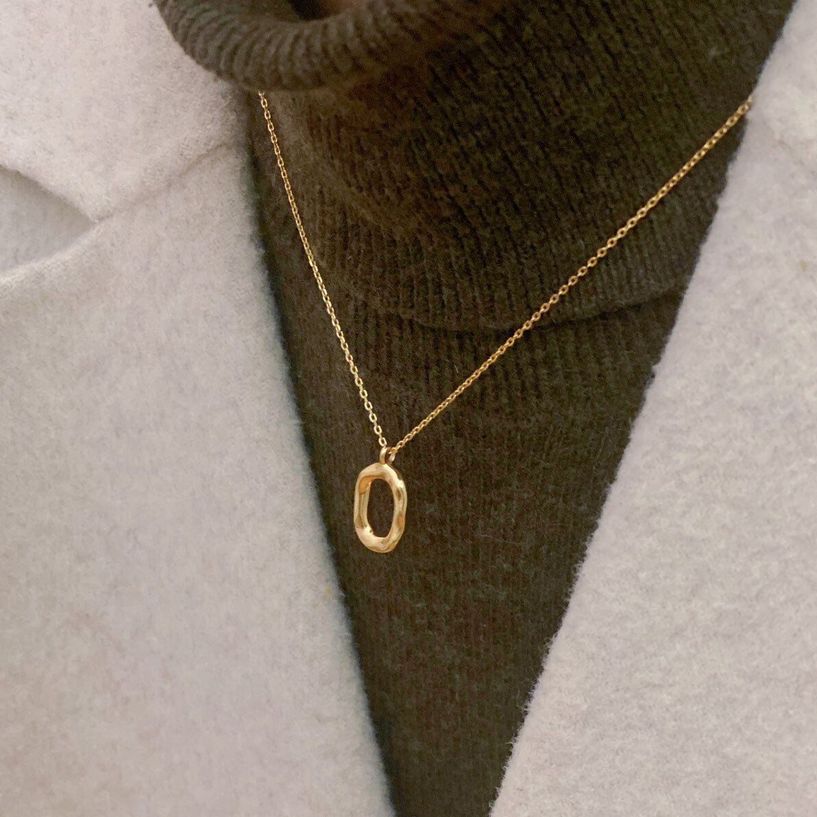 Unique minimalist design necklace featuring a oval ring circle pendant, it is classic and modern.