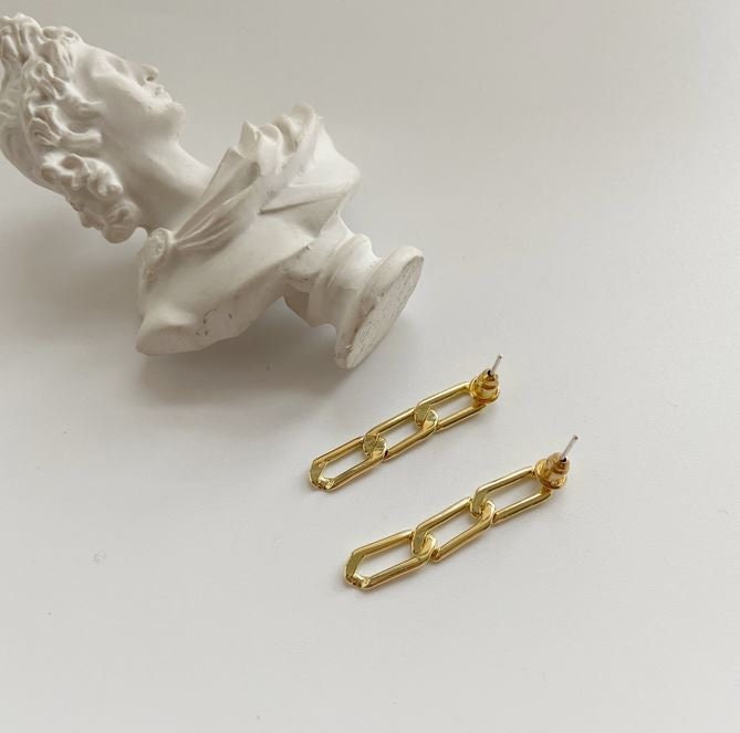 Are you a fan of Kendall Jenner fashion style? Looking for a gift for a Kendall Jenner's fan ? A contemporary Gold link earrings that boost your everyday outfit. Inspired by Kendall Jenner iconic outfit and , this classy earrings was seen on many of Kendall Jenner casual outfit, feature link chain dangle style. This gold dangle earrings and Silver dangle earrings will be the perfect choice for a Kendall Jenner fan or for yourself. Instantly elevate your daily look to celebrity style.