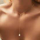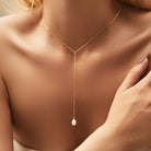 Delicate lariat and Y necklace is your best handmade drop necklace. These sparkling Lariat necklaces are designed to be worn on repeat. Delicate adjustable long drop necklace matches with any dresses. Featuring a delicate gold chain, with freshwater pearl, our 14k gold Y necklace is one that will go with almost any outfit in your close. Classic and modern silver lariat, drop and long pendant necklaces for every occasion. Best bridal jewellery fit for any dress.