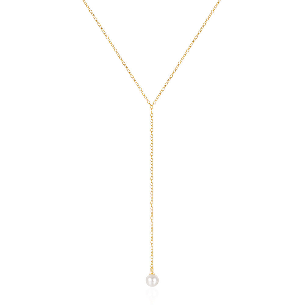 Gold Lariat and Y Necklace with Freshwater Pearl