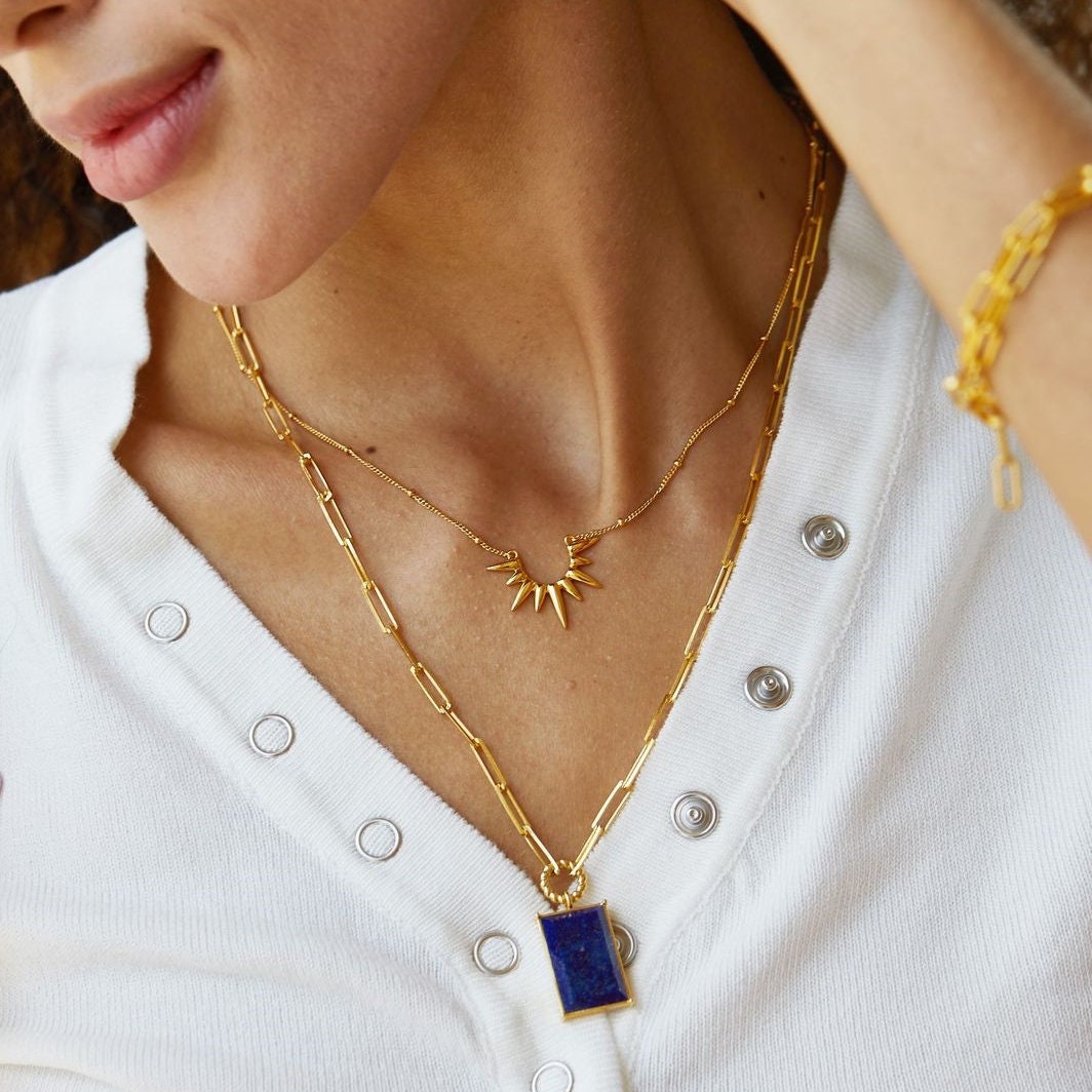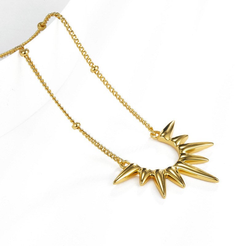 Sunburst Gold Necklace is believed to endow the wearer with vibrant, radiant energy. The sun is the light and warmth in our universe and in our lives. This Half sun necklace is perfect for layering or worn solo.