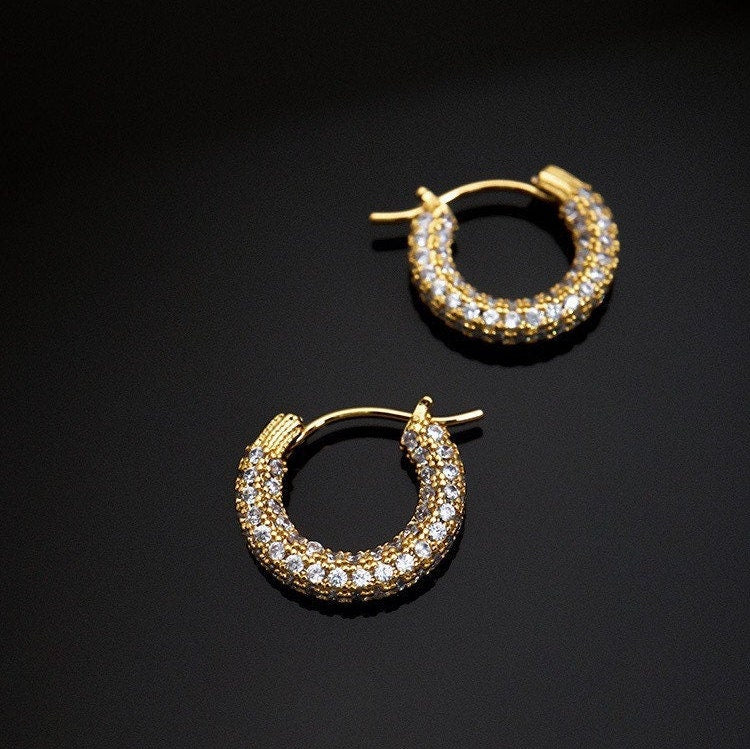 Embrace the celebrity style with our chic Diamond Pave Hoop earrings, a fashion staple for icons like Dua Lipa, Kendall Jenner, you can channel the same glamour without the hefty price tag! Our Kendall Jenner Hoop Earrings, available in gold and silver finishes, are perfect for adding a touch of elegance to any outfit.