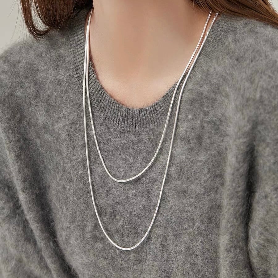 Delicate Snake chain necklace is your best minimalist chain necklace. These S925 silver Snake chain necklaces are designed to be worn on repeat. Versatile design with extra length allows you to wear in single layer, double layer or triple layer.