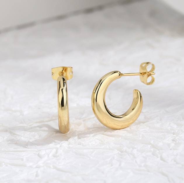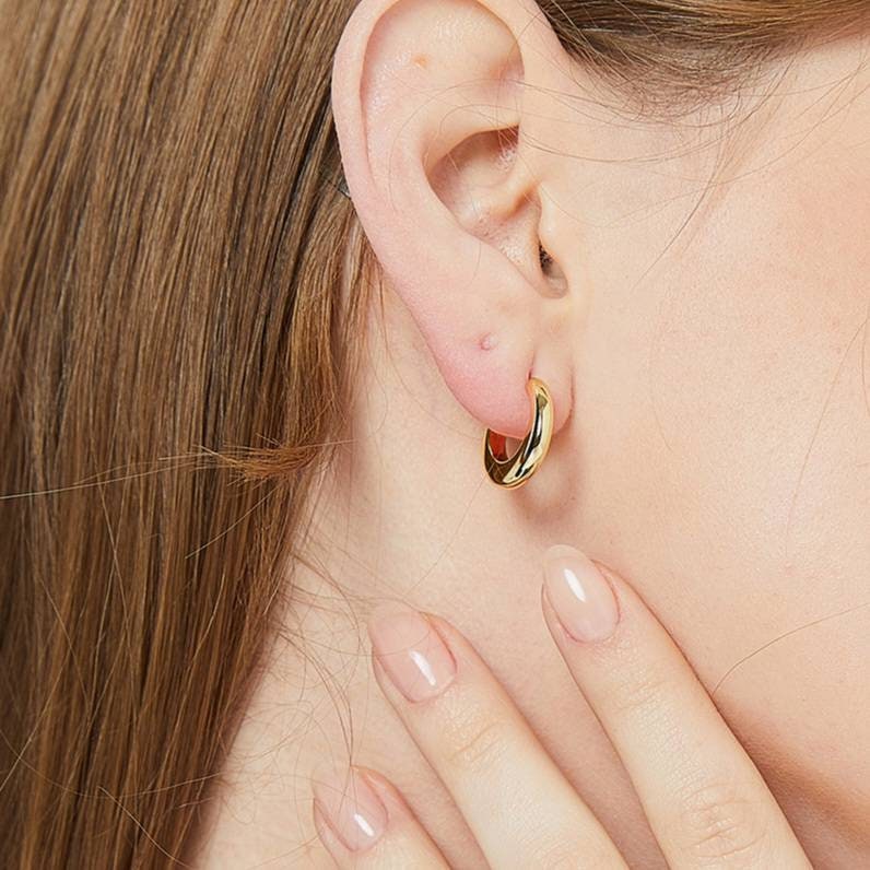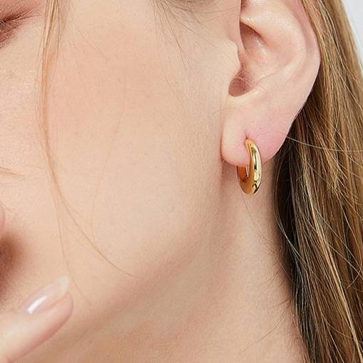 Delicate gold small double hoop with cubic zirconia gemstones, perfect for daily wear. They go well with any outfit, and easy to match and play with other earrings and studs combination.