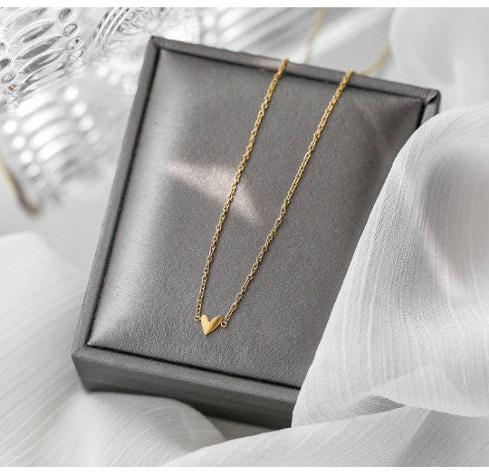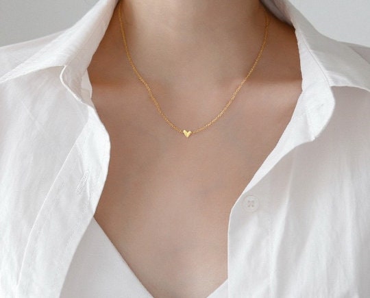Hand drawn heart shape pendant necklace, Asymmetry tiny heart shape necklace. perfect gift for her!