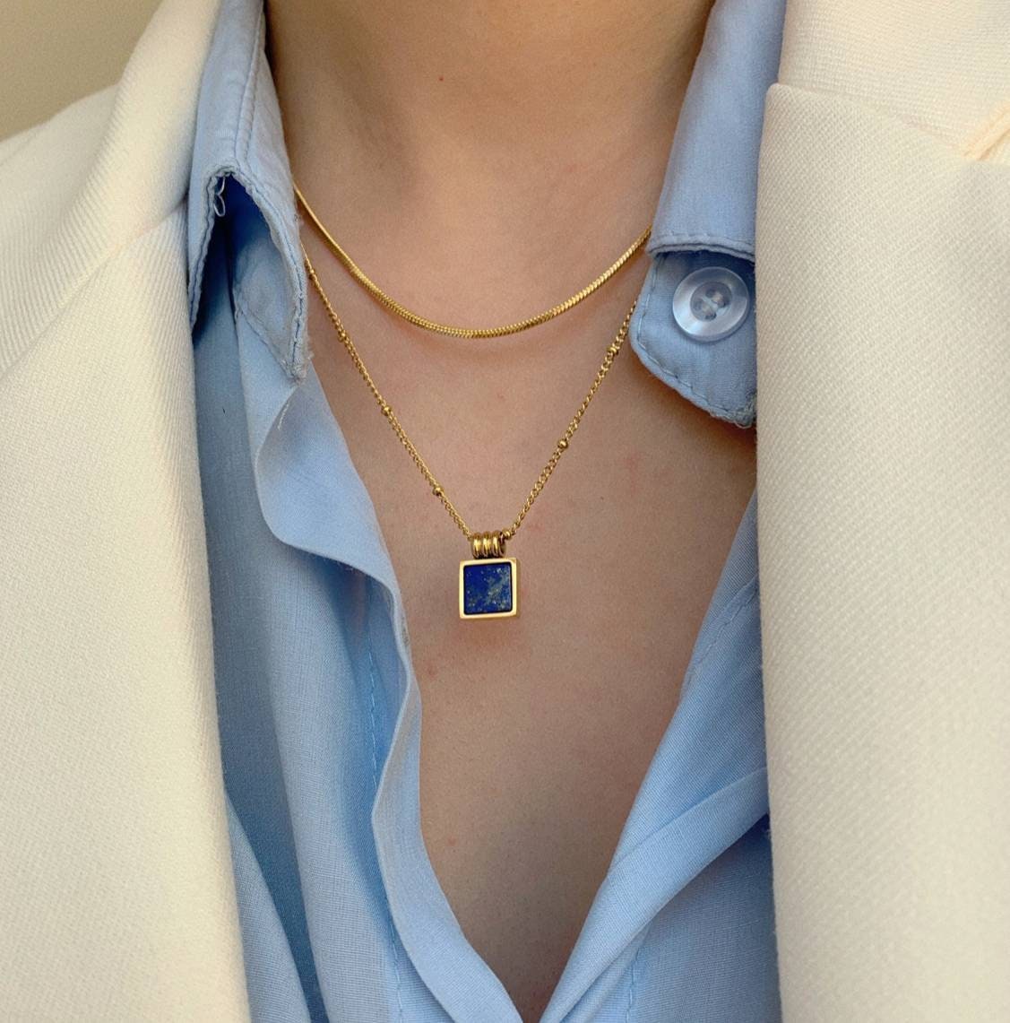 Square Lapis Pendant Necklace