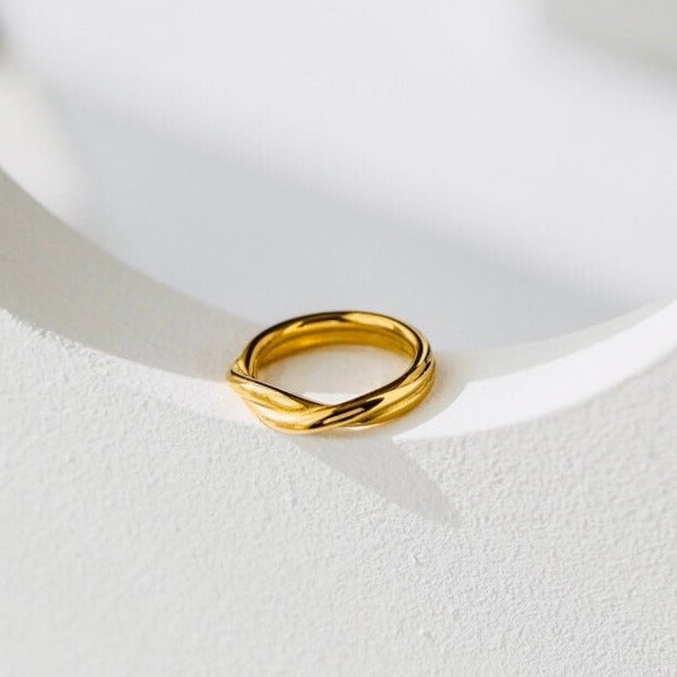 This slightly twist Rope ring will be your next favourite everyday ring. Featuring two rope band twist , a symbol of love and eternity. It is timeless and chic design, two string interface with each other, elegant and unique design love knot ring, made of high quality 18K Gold plated on Stainless Steel, no tarnish and it is water proof, safe to wear all day long.